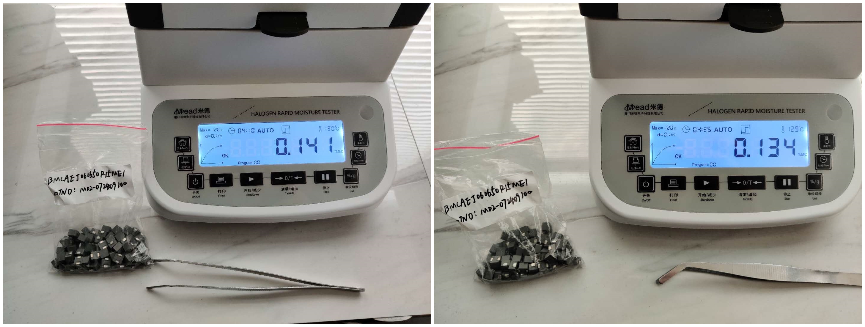 測試目的:在電感的生產過程中,磁芯是不可或缺的一部分,而磁芯是有磁性粉體組成的,在磁芯的生產過程中,從最開始的原理入場,到預燒,到驗收,都需要對水分含量進行檢測,減少水分含量太高對產品功效的影響。