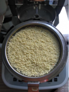 第三步,往測試樣品盤上倒入樣品,不宜過多,也不宜太少,一般取5~10克即可。(不同產(chǎn)品取的克重不同)。雞精我們?nèi)?克來測量即可