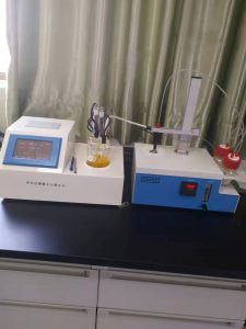 3.6、初次使用新鮮的庫侖電量法卡爾費(fèi)休試劑含有過量的碘,顏色為深紅色,儀器中間提示過碘狀態(tài),然后用微量注射器抽取20~50ul的純水從加樣口緩慢加入反應(yīng)杯液面以下,直至反應(yīng)杯內(nèi)液體顏色變淡黃色,儀器左上方提示過水,含水量顯示值開始計(jì)數(shù),停止加水,如果加入過多的水會(huì)導(dǎo)致電解平衡需要較長的時(shí)間。