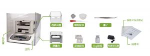 ①主機、②水槽、③測量臺、④鑷子、⑤說明書、⑥砝碼、⑦防風(fēng)防塵罩、⑧測顆粒配件一套、⑨測浮體配件一套、⑩電源變壓器一個